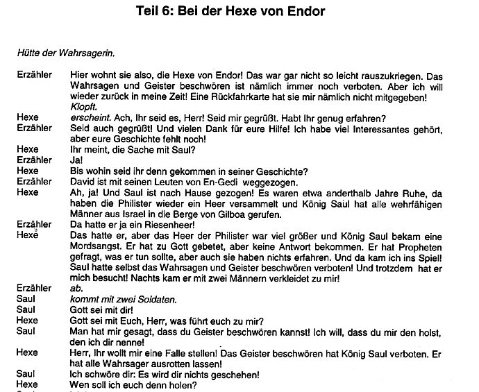 Nicht nur für Kinder spannend ist sicherlich die nächtliche Beschwörungszene mit der "Hexe von Endor". Die packenden Geschichten um David werden dem Publikum nicht in Bibeldeutsch vorgetragen, sondern in Alltagssprache geschildert und als Musical auf die Bühne gebracht. Kinder, Jugendliche und Erwachsene kann das begeistern – ganz sicher beim Landeskinderchortag und hoffentlich auch bei vielen weiteren Anlässen. Allen Beteiligten an diesem Projekt gilt mein herzlicher Dank!