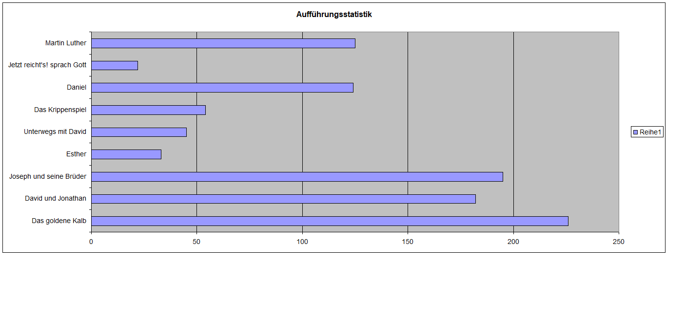 Grundlage sind die im Internet gefundenen Aufführungseintragungen. Sind in einer Eintragung mehrere Aufführungen aufgeführt, wird nur eine gezählt.